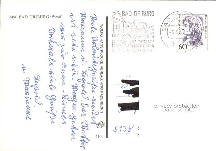 72452059 alte Postkarte Bad Driburg Katholische Kirche Kurhotel Kurhaus Lange Strasse Rosengarten postalisch gelaufen Erhaltung siehe scans KatCode: 11110005762004