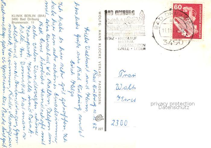 72969648 alte Postkarte Bad Driburg Klinik Berlin Schwimmbad postalisch gelaufen Erhaltung siehe scans [LiesaD40] KatCode: 11110005762004