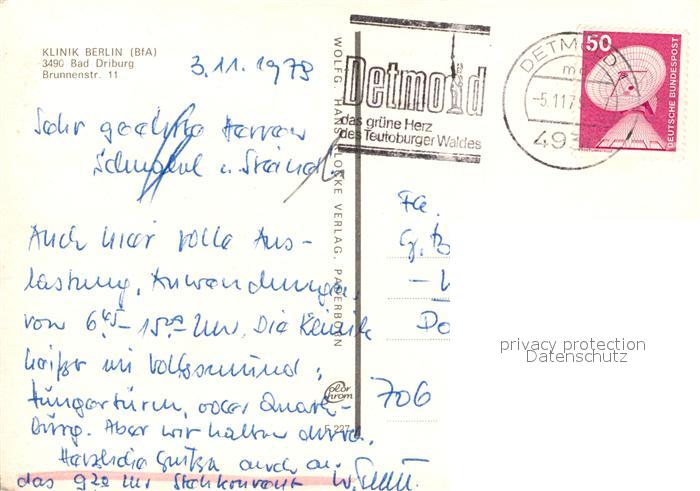 73128287 alte Postkarte Bad Driburg Klinik Berlin postalisch gelaufen Erhaltung siehe scans [PaolaD17] KatCode: 11110005762004
