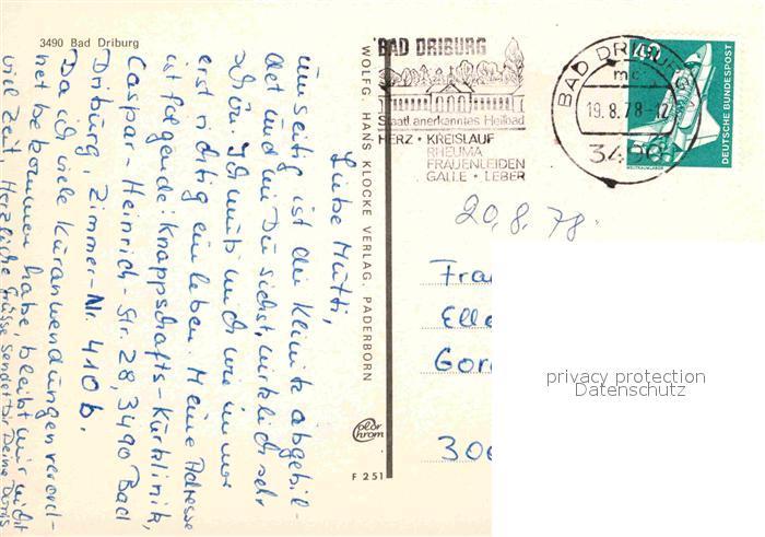 72698674 alte Postkarte Bad Driburg Klinik der Bundesknappschaft postalisch gelaufen Erhaltung siehe scans [FriedD77] KatCode: 11110005762004
