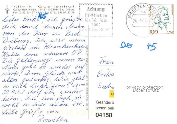 73009269 alte Postkarte Bad Driburg Klinik Quellenhof Speisesaal postalisch gelaufen Erhaltung siehe scans [WerneD78] KatCode: 11110005762004