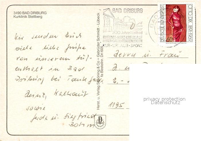 73744582 alte Postkarte Bad Driburg Kurklinik Stellberg Park Wasserspiele postalisch gelaufen Erhaltung siehe scans [FriedD77] KatCode: 11110005762004
