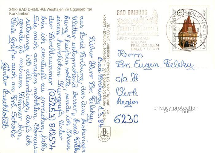 73129416 alte Postkarte Bad Driburg Kurkliniken Fliegeraufnahme postalisch gelaufen Erhaltung siehe scans [PaolaD17] KatCode: 11110005762004