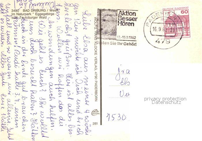 72896990 alte Postkarte Bad Driburg Kurpark Eingang Kurklinik Eggeland LVA BfA Wandelhalle postalisch gelaufen Erhaltung siehe scans [KathaD81] KatCode: 11110005762004