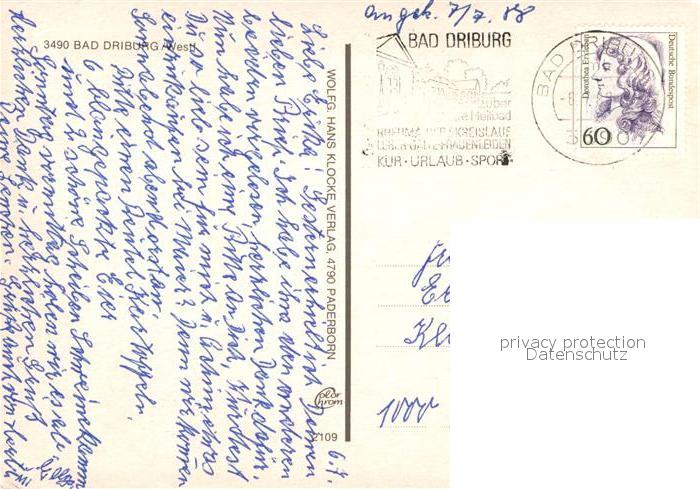 72929472 alte Postkarte Bad Driburg Kurpark Lange Strasse Wandelhalle Caspar-Heinrich-Klinik Kurpark postalisch gelaufen Erhaltung siehe scans [LiesaD40] KatCode: 11110005762004