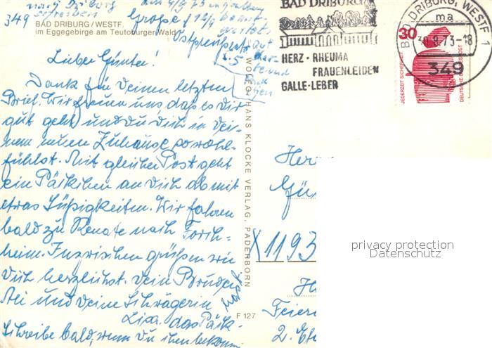 73009156 alte Postkarte Bad Driburg Kurpark Sanatorium Berlin BfA Trink und Wandelhalle Fontaene Rosengarten Kurhotel Rathaus Caspar Heinrich Quelle postalisch gelaufen Erhaltung siehe scans [WerneD78] KatCode: 11110005762004