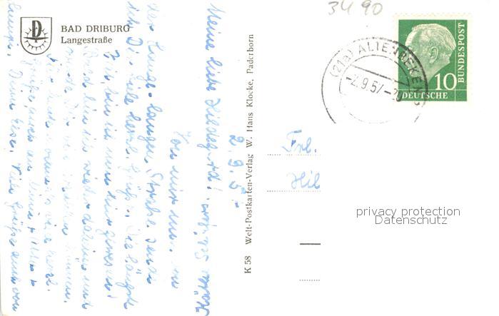 43345421 alte Postkarte Bad Driburg Langestrasse postalisch gelaufen Erhaltung siehe scans [WerneD78] KatCode: 11110005762004