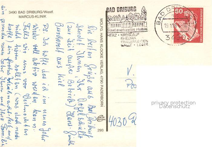 73670199 alte Postkarte Bad Driburg Marcus Klinik Details postalisch gelaufen Erhaltung siehe scans [WerneD78] KatCode: 11110005762004
