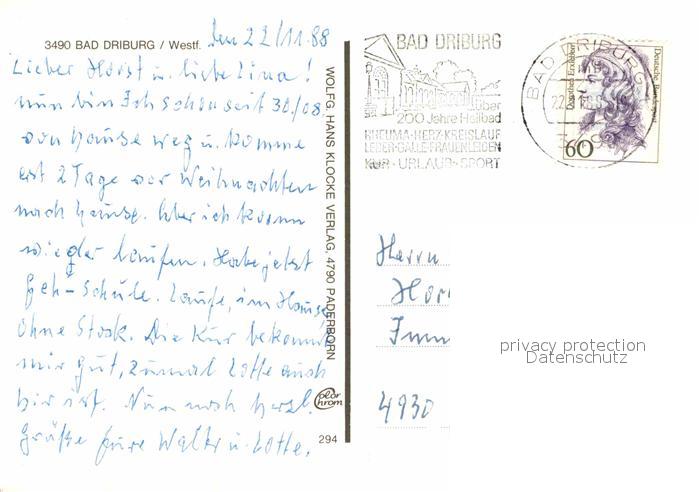 72823385 alte Postkarte Bad Driburg Marcus Klinik Hallenbad Halle Restaurant postalisch gelaufen Erhaltung siehe scans [FriedD77] KatCode: 11110005762004