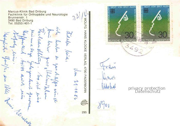 74040654 alte Postkarte BAD DRIBURG Marcus-Klinik Speisesaal Aufenthaltsraum Hallenbad postalisch gelaufen Erhaltung siehe scans [FriedD77] KatCode: 11110005762004
