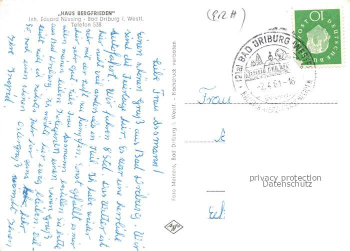 74136896 alte Postkarte BAD DRIBURG NRW Haus Bergfrieden Gaststube Panorama postalisch gelaufen Erhaltung siehe scans [WerneD78] KatCode: 11110005762004