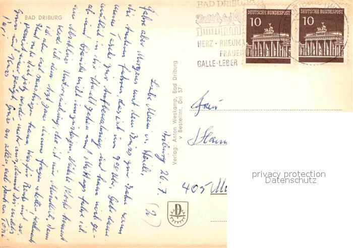 72688157 alte Postkarte Bad Driburg Panorama postalisch gelaufen Erhaltung siehe scans [FriedD77] KatCode: 11110005762004