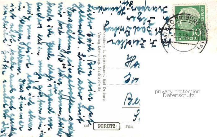 72823248 alte Postkarte Bad Driburg Panorama Blick von der Iburg Kurhaeuser Trinkhalle Steingarten Kurpark Wappen postalisch gelaufen Erhaltung siehe scans [FriedD77] KatCode: 11110005762004
