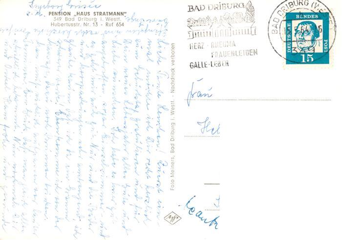 73886128 alte Postkarte Bad Driburg Pension Haus Stratmann Gastraeume Panorama postalisch gelaufen Erhaltung siehe scans [FriedD77] KatCode: 11110005762004
