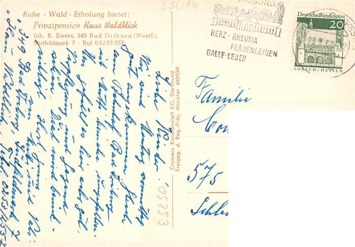 73876525 alte Postkarte Bad Driburg Privatpension Haus Waldblick postalisch gelaufen Erhaltung siehe scans [FriedD77] KatCode: 11110005762004