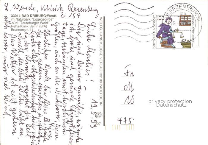 72276928 alte Postkarte Bad Driburg Rehaklinik Berlin postalisch gelaufen Erhaltung siehe scans KatCode: 11110005762004
