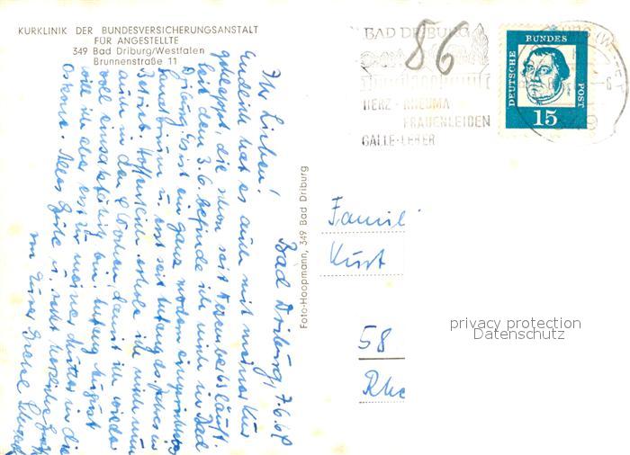 73094190 alte Postkarte Bad Driburg Sanatorium Berlin postalisch gelaufen Erhaltung siehe scans [LiesaD40] KatCode: 11110005762004