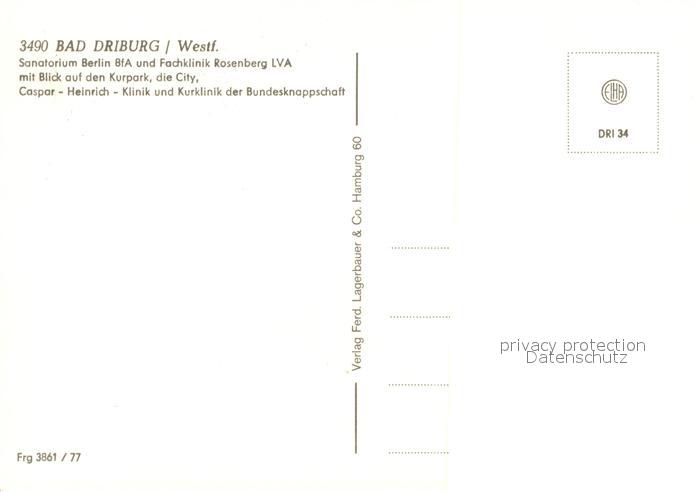 73149172 Bad Driburg Sanatorium Berlin BfA Fachklinik Rosenberg LVA Kurpark City Kurklinik Fliegeraufnahme postalisch nicht gelaufen Erhaltung siehe scans [FriedD77] KatCode: 11110005762004
