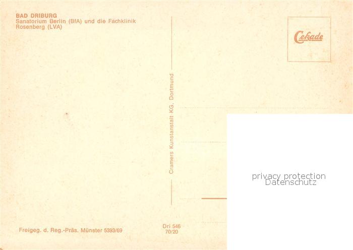 73616364 Bad Driburg Sanatorium Berlin BfA und Fachklinik Rosenberg LVA Fliegeraufnahme postalisch nicht gelaufen Erhaltung siehe scans [WerneD78] KatCode: 11110005762004