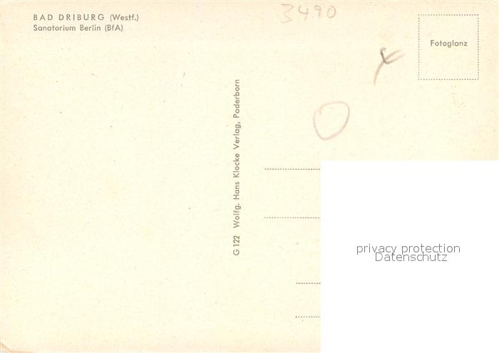 73708651 Bad Driburg Sanatorium Berlin postalisch nicht gelaufen Erhaltung siehe scans [FriedD77] KatCode: 11110005762004