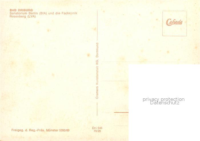 72989660 Bad Driburg Sanatorium der BfA Berlin mit Fachklinik Rosenberg LVA Fliegeraufnahme postalisch nicht gelaufen Erhaltung siehe scans [WerneD78] KatCode: 11110005762004