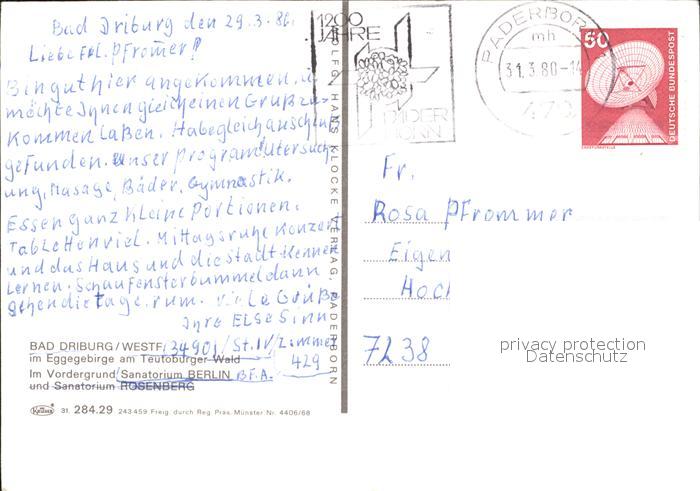 72427024 alte Postkarte Bad Driburg Sanatorium Eggegebirge am Teutoburger Wald Fliegeraufnahme postalisch gelaufen Erhaltung siehe scans KatCode: 11110005762004