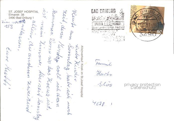 72112987 alte Postkarte Bad Driburg St Josef Hospital postalisch gelaufen Erhaltung siehe scans KatCode: 11110005762004