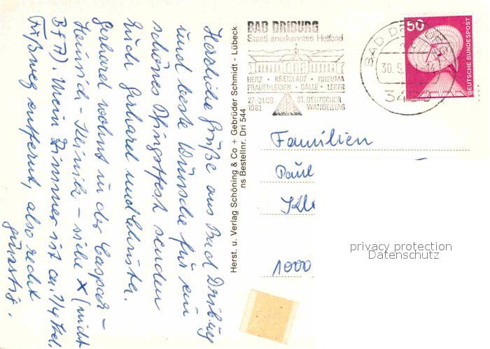 72914786 alte Postkarte Bad Driburg Stadtpanorama Kurklinik Berlin BfA postalisch gelaufen Erhaltung siehe scans [FriedD77] KatCode: 11110005762004