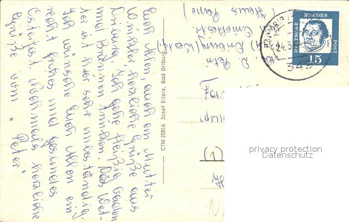 72092456 alte Postkarte Bad Driburg Stellbergheim Kurpark Kurplatz postalisch gelaufen Erhaltung siehe scans KatCode: 11110005762004