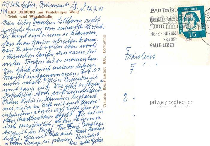 72761746 alte Postkarte Bad Driburg Trink- Wandelhalle postalisch gelaufen Erhaltung siehe scans [NatalD47] KatCode: 11110005762004