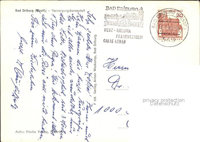 72530121 alte Postkarte Bad Driburg Versorgungskuranstalt postalisch gelaufen Erhaltung siehe scans KatCode: 11110005762004