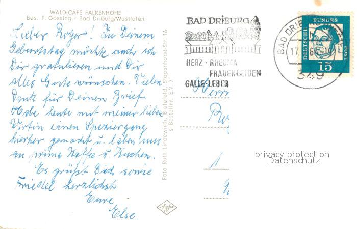 73641000 alte Postkarte Bad Driburg Wald Cafe Falkenhoehe postalisch gelaufen Erhaltung siehe scans [WerneD78] KatCode: 11110005762004