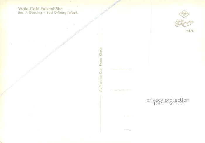 73727401 Bad Driburg Wald Cafe Falkenhoehe postalisch nicht gelaufen Erhaltung siehe scans [WerneD78] KatCode: 11110005762004