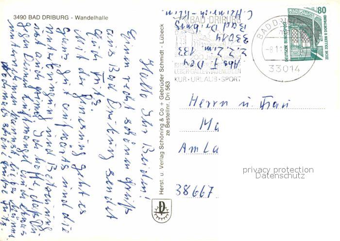 72694547 alte Postkarte Bad Driburg Wandelhalle postalisch gelaufen Erhaltung siehe scans [FriedD77] KatCode: 11110005762004