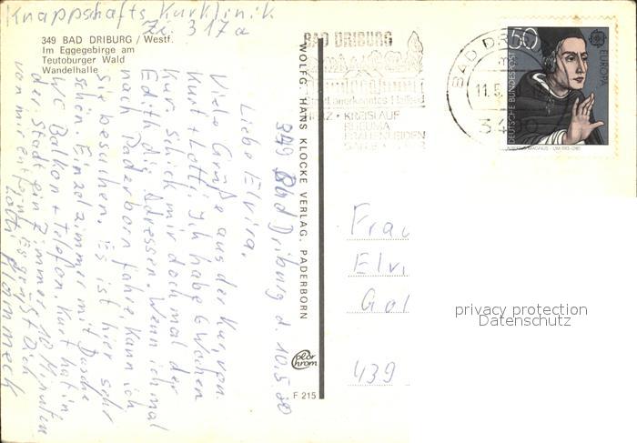 72526435 alte Postkarte Bad Driburg Wandelhalle postalisch gelaufen Erhaltung siehe scans KatCode: 11110005762004