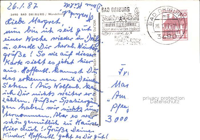 72002270 alte Postkarte Bad Driburg Wandelhalle postalisch gelaufen Erhaltung siehe scans KatCode: 11110005762004