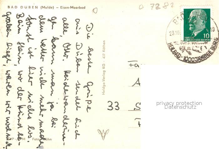 73121654 alte Postkarte Bad Dueben Eisen Moorbad postalisch gelaufen Erhaltung siehe scans [KathaD81] KatCode: 11110014374020