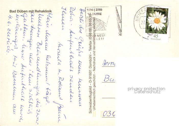 73647852 alte Postkarte Bad Dueben Fliegeraufnahme mit Rehaklinik postalisch gelaufen Erhaltung siehe scans [WerneD78] KatCode: 11110014374020