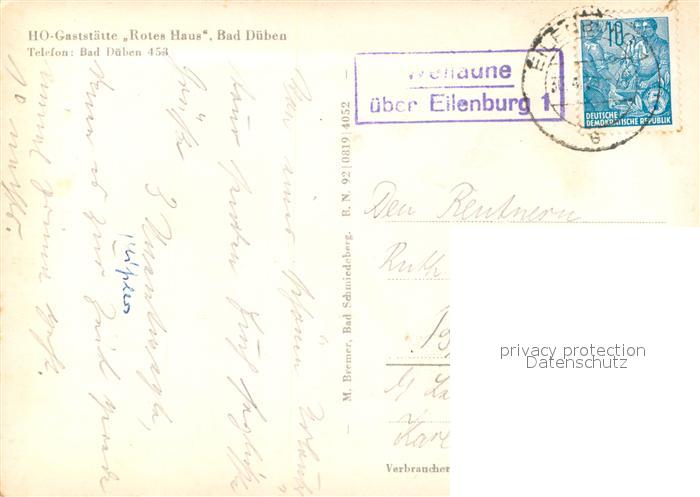 73718310 alte Postkarte Bad Dueben HO-Gaststaette Rotes Haus Aussenansicht postalisch gelaufen Erhaltung siehe scans [LiesaD40] KatCode: 11110014374020