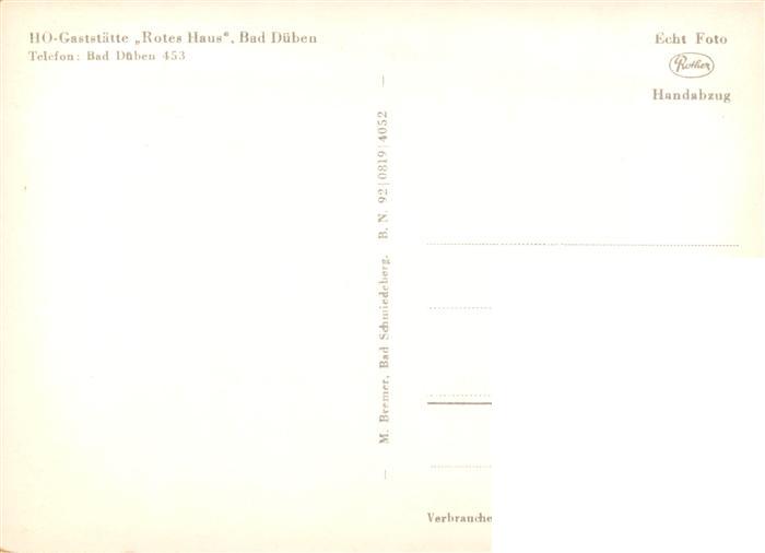 73888157 Bad Dueben HO-Gaststaette Rotes Haus Handabzug postalisch nicht gelaufen Erhaltung siehe scans [FriedD77] KatCode: 11110014374020
