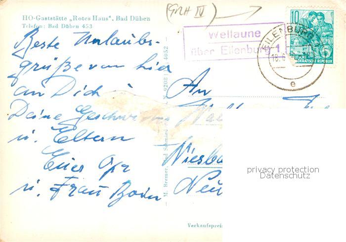 73867681 alte Postkarte Bad Dueben HO Gaststaette Rotes Haus postalisch gelaufen Erhaltung siehe scans [WerneD78] KatCode: 11110014374020