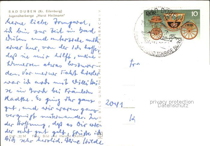 72181068 alte Postkarte Bad Dueben Jugendherberge Horst Heilmann postalisch gelaufen Erhaltung siehe scans KatCode: 11110014374020