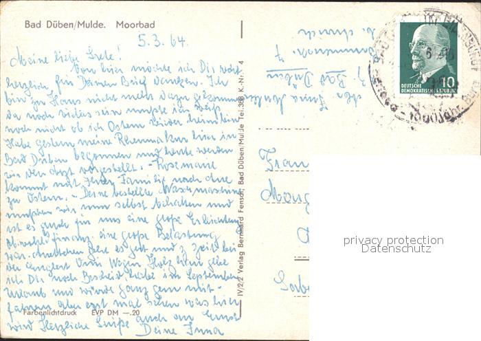 72202691 alte Postkarte Bad Dueben Moorbad postalisch gelaufen Erhaltung siehe scans KatCode: 11110014374020