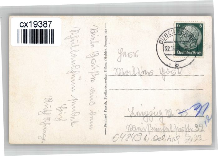 30727502 alte Postkarte Bad Dueben Pension Parkschloss postalisch gelaufen KatCode: 11110014374020
