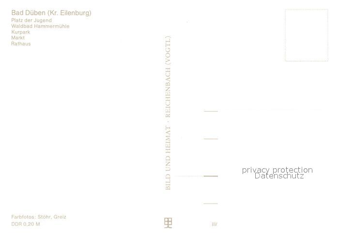 73103316 Bad Dueben Platz der Jugend Waldbad Hammermuehle Kurpark Markt Rathaus postalisch nicht gelaufen Erhaltung siehe scans [WerneD78] KatCode: 11110014374020