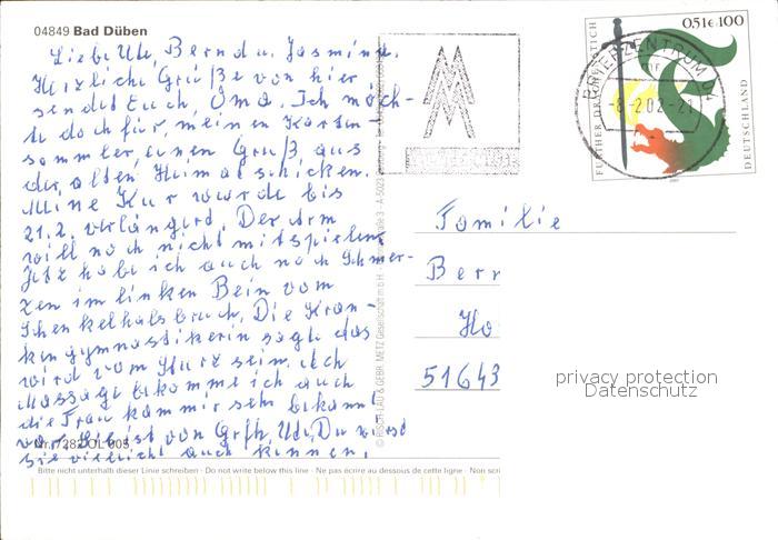 72012152 alte Postkarte Bad Dueben Rehaklinik postalisch gelaufen Erhaltung siehe scans KatCode: 11110014374020