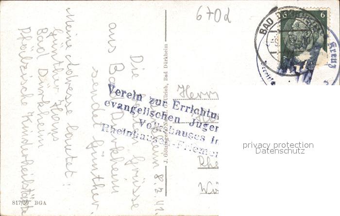 41793256 alte Postkarte Bad Duerkheim Bahnhof Kirche postalisch gelaufen Erhaltung siehe scans KatCode: 11110007332002