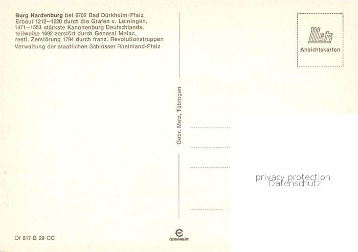 73180718 Bad Duerkheim Burg Hardenburg 13. Jhdt. Burgruine postalisch nicht gelaufen Erhaltung siehe scans [FriedD77] KatCode: 11110007332002