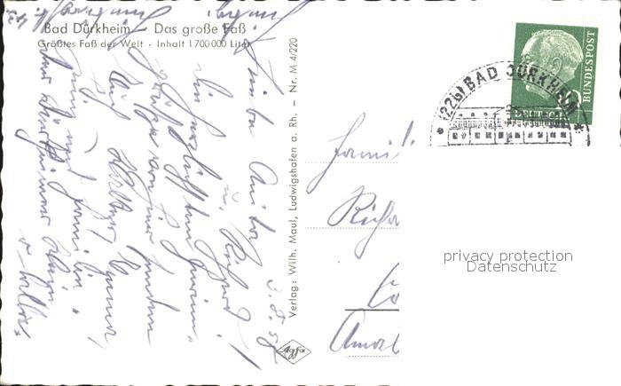 72444859 alte Postkarte Bad Duerkheim Das grosse Fass postalisch gelaufen Erhaltung siehe scans KatCode: 11110007332002