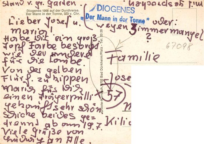 73869024 Bad Duerkheim Diogenes 1968 auf der Durchreise Der Mann in der Tonne postalisch nicht gelaufen Erhaltung siehe scans [FriedD77] KatCode: 11110007332002